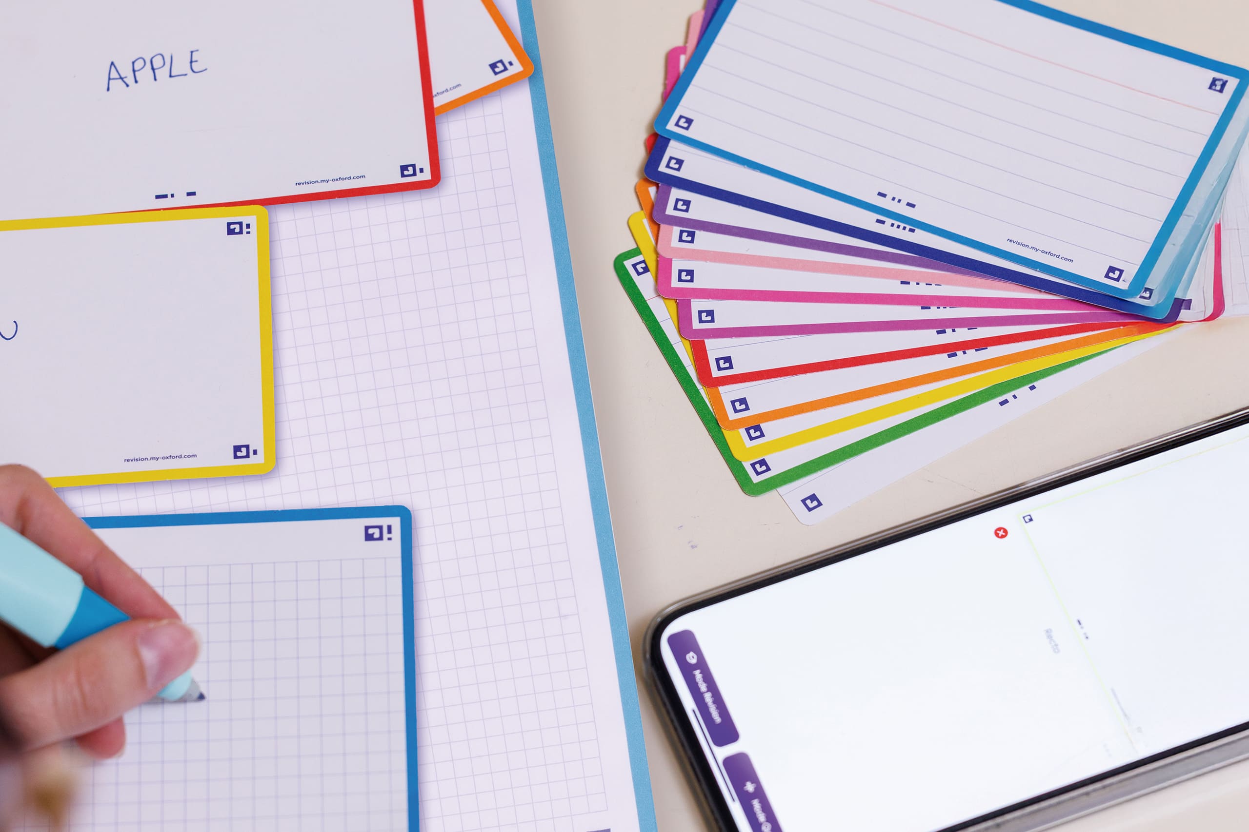 Escribe el contenido general del trimestre en la parte superior del cuaderno o en una flashcard A5.