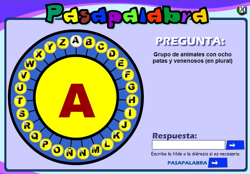 Por eso, os proponemos el juego de pasapalabra, un juego basado en una ruleta de palabras. En cada letra tendréis una pregunta y vuestros alumnos deberán responder con la palabra concreta.
