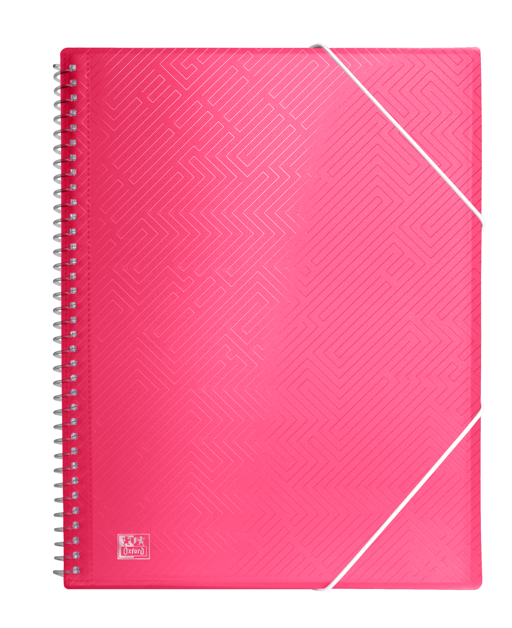 La carpeta de fundas de espiral A4 OXFORD URBAN es muy práctica de usar, ya que las tapas se pueden abrir 360 ° gracias a su espiral transparente de plástico. Permite llevar el contenido perfectamente protegido gracias a su cierre con gomas. Incluye 30 fundas en acabado cristal, lisas y transparentes para una visibilidad inmediata del contenido. Las tapas de polipropileno translúcido aseguran una inmediata visibilidad de los documentos. Disponible en diferentes colores vivos a juego con los colores de la gama de cuadernos Oxford CLASSIC.