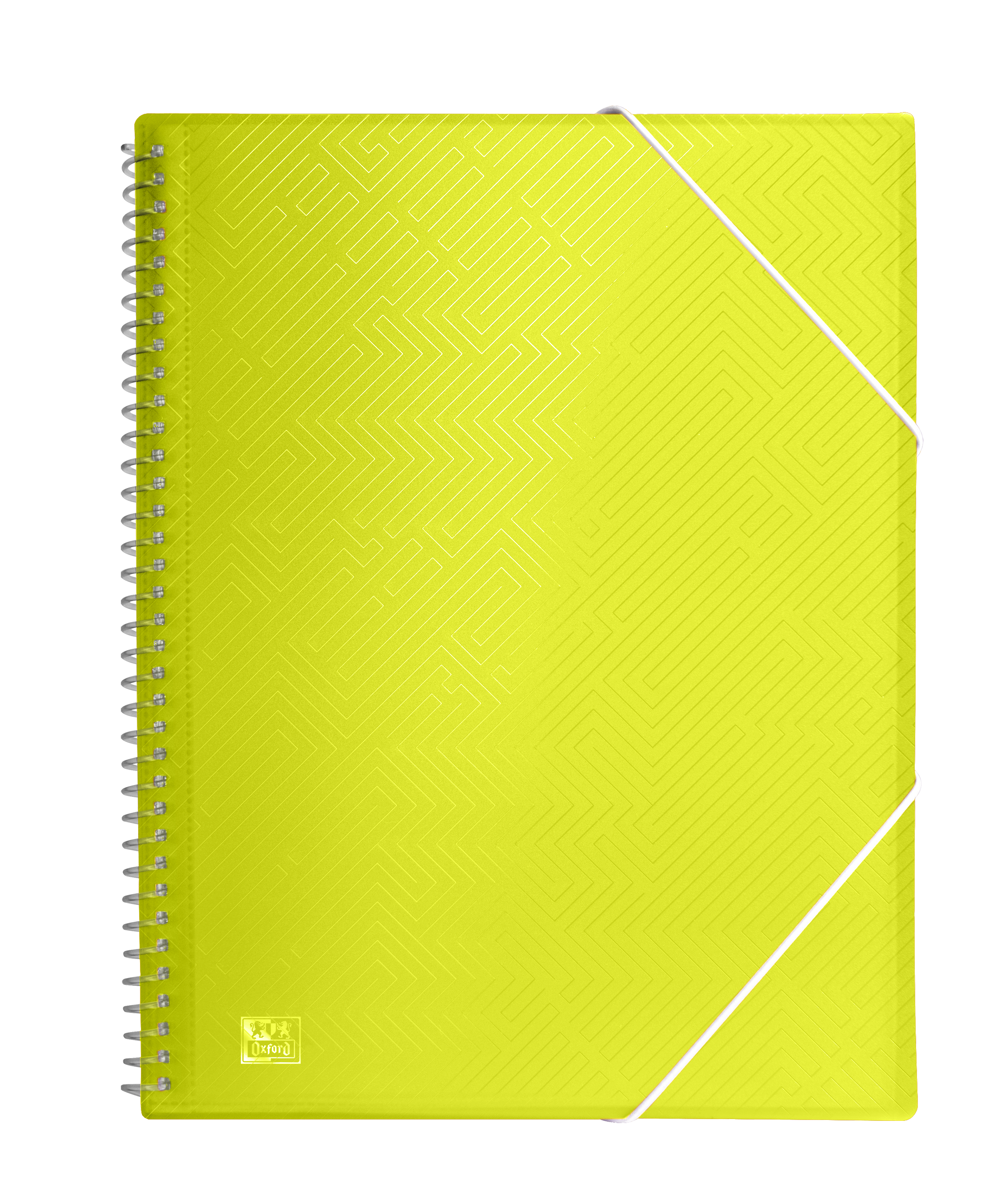 La carpeta de fundas de espiral A4 OXFORD URBAN es muy práctica de usar, ya que las tapas se pueden abrir 360 ° gracias a su espiral transparente de plástico. Permite llevar el contenido perfectamente protegido gracias a su cierre con gomas. Incluye 20 fundas en acabado cristal, lisas y transparentes para una visibilidad inmediata del contenido. Las tapas de polipropileno translúcido aseguran una inmediata visibilidad de los documentos. Disponible en diferentes colores vivos a juego con los colores de la gama de cuadernos Oxford CLASSIC.