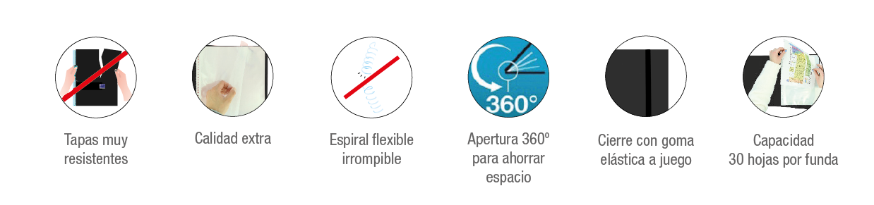 Las carpetas de fundas OXFORD LIVE & GO te vendrán genial para tener tus hojas ordenadas y poder consultarlas fácilmente. El material de sus tapas es muy resistente lo que las hace irrompibles. Sus 30 fundas, gracias a su acabado cristal, te permitirán ver el contenido de los documentos con facilidad. Además, gracias a su espiral de plástico irrompible podrás girar las hojas como si fuera un cuaderno con total comodidad. Incluye cierre con goma a juego con la carpeta.