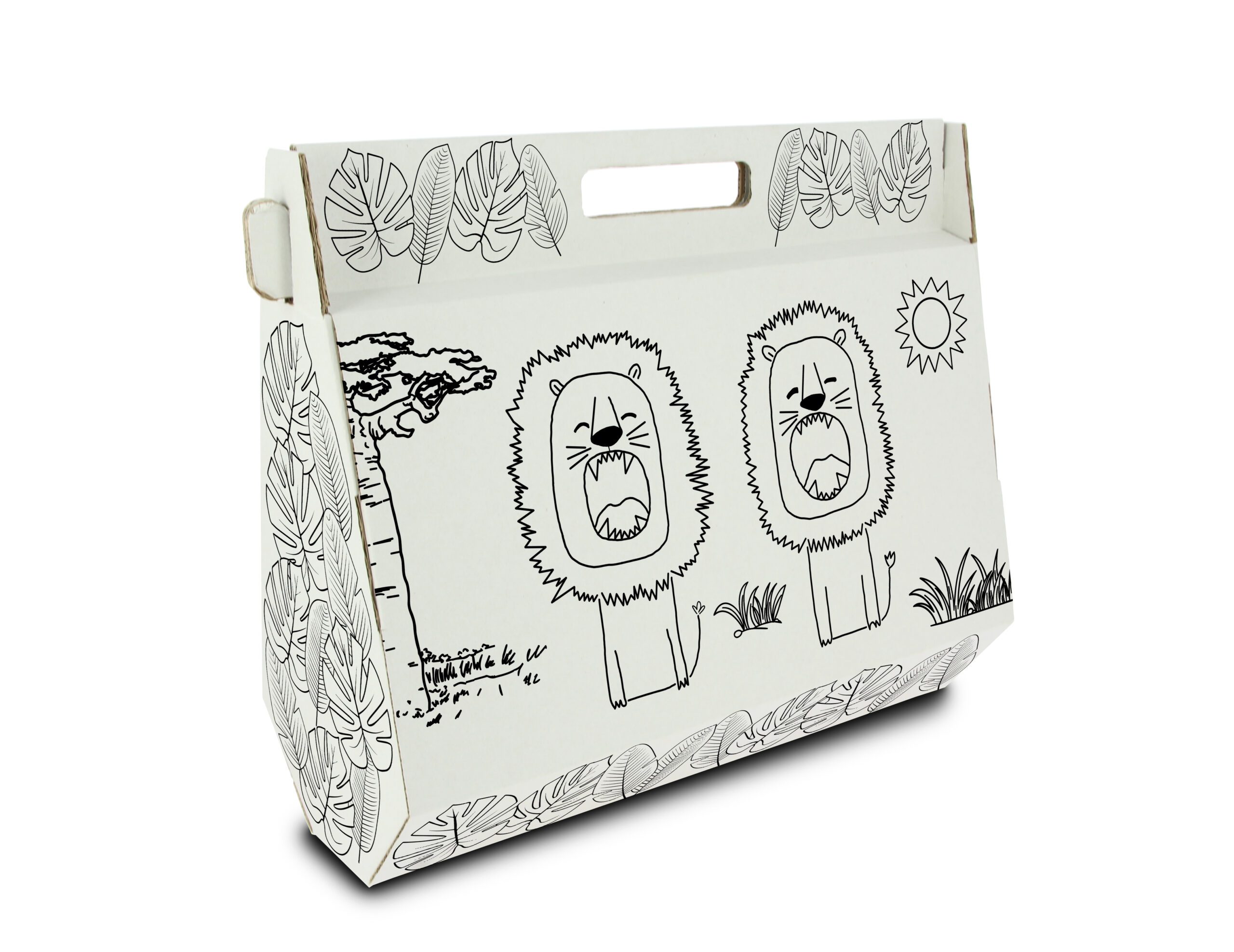 El lote para que los más pequeños desarrollen sus habilidades artísticas. La caja, en forma de maletín y con asa, hace que se pueda transportar todo el material fácilmente. Además, está decorada con dibujos preimpresos, para pintarlos al gusto.