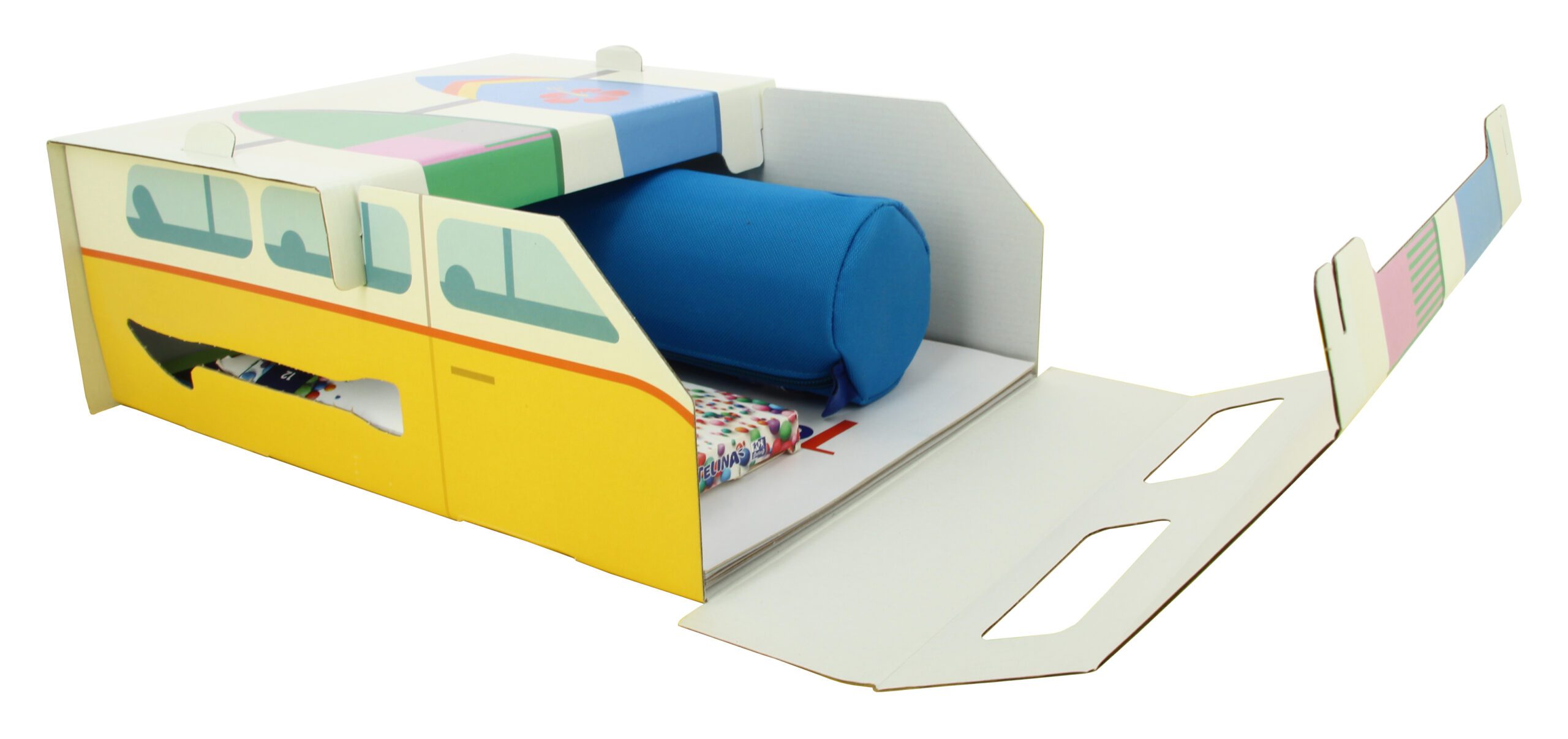 Un original lote en forma de furgoneta, que sirve como caja e incluso para jugar con él.
