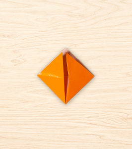 1. Cogemos un papel naranja y dibujamos un cuadrado de 10×10 cm. En este caso usamos el papel charol, pero también puede hacerse con cartulina.